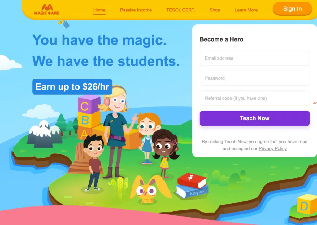 How to sign up: Submit an application on their website. You’ll be asked to give a demo class of about 10 minutes. After passing the first stage you’ll be given some training and asked to do a 25-minute class. A background check will be done and if you are successful you can start teaching.