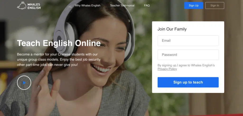How to sign up: Apply on the Da Da website by submitting your personal information. You’ll then have an interview, some training and testing of your internet speed and stability. If you pass these stages you’ll receive a contract and teach probationary classes before being hired permanently.