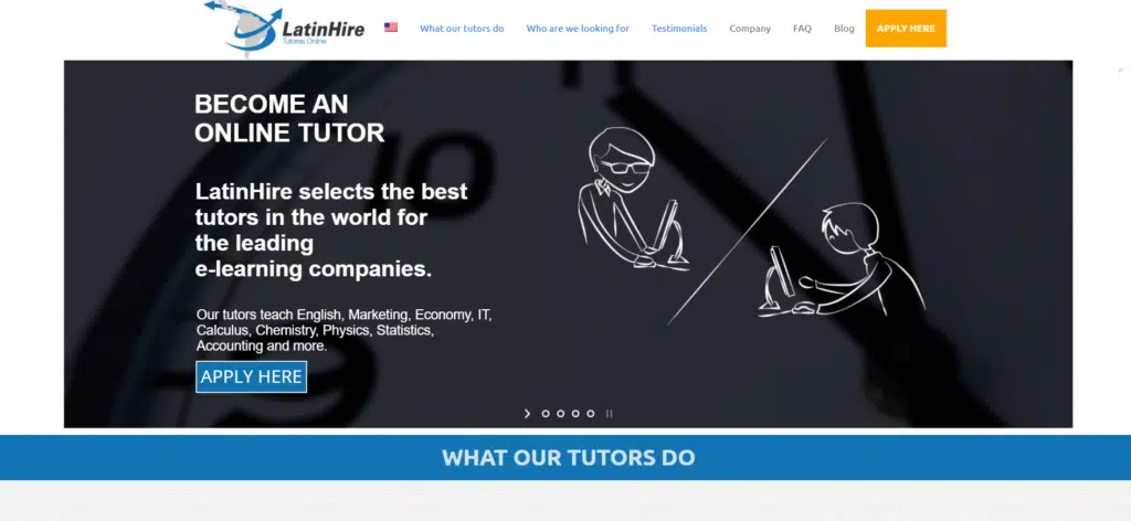 Latin Hire is more like an agency than an online school. They recruit teachers for other educational companies. The educational companies Latin Hire work with are mostly located in South America and they recruit teachers for subjects like  English, Calculus, Chemistry, Physics, Statistics, Algebra, Geometry, Trigonometry, Accounting, Finance and Economy.